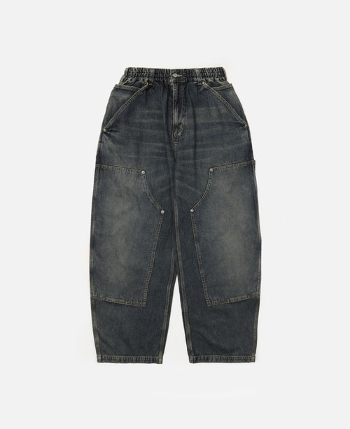 Vintage Dyed Selvedge Denim Double Knee Curved Worker Pants (Indigo)